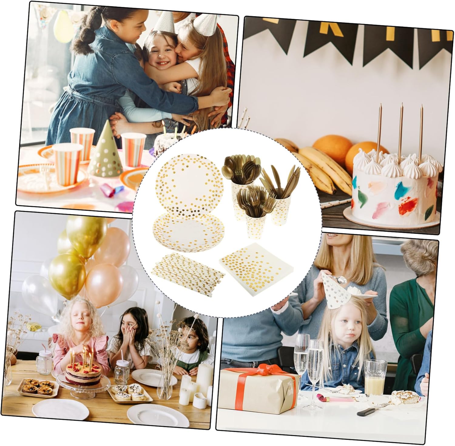 Package Include 25 x 7-inch Plates 25 x 9-inch Plates 25 x Cups 25 x Cutters 25 x Forks 25 x Spoons 25 x straws 25 x napkins Characteristics -Material:Paper New Year Theme Dinnerware -Color:Golden Paper Dinnerware -Size:8.50X7.50X7.50cm/3.34X2.95X2.95in(Cup) Party Paper Dinnerware -Beautiful and unique, the plates are suitable for many occasions, adding color to your party dessert table Dinnerware Set For Party. -The paper cup set with dot pattern is the addition to any stylish and fashionable party, very convenient Party Paper Cups. -These elegant and sophisticated dots add a touch of elegance to your table setting, choice for parties Gathering Fruit -This party paper plate set contains paper cups, napkins, knives, forks, and spoons for a convenient experience Dish. -This paper plate set is serving food, great for parties, food services, can be widely used New Year Theme Tableware.Goods DescriptionAppetizer Plates With its stylish and fashionable dot pattern design, it adds a touch of elegance to your table setting.New Year Theme Tableware The colorful party tableware creates a joyful atmosphere, making your party more enjoyable.Paper Cups Kit The party paper plate set is a choice for any party or gathering.New Year Tableware Kit Made for convenience