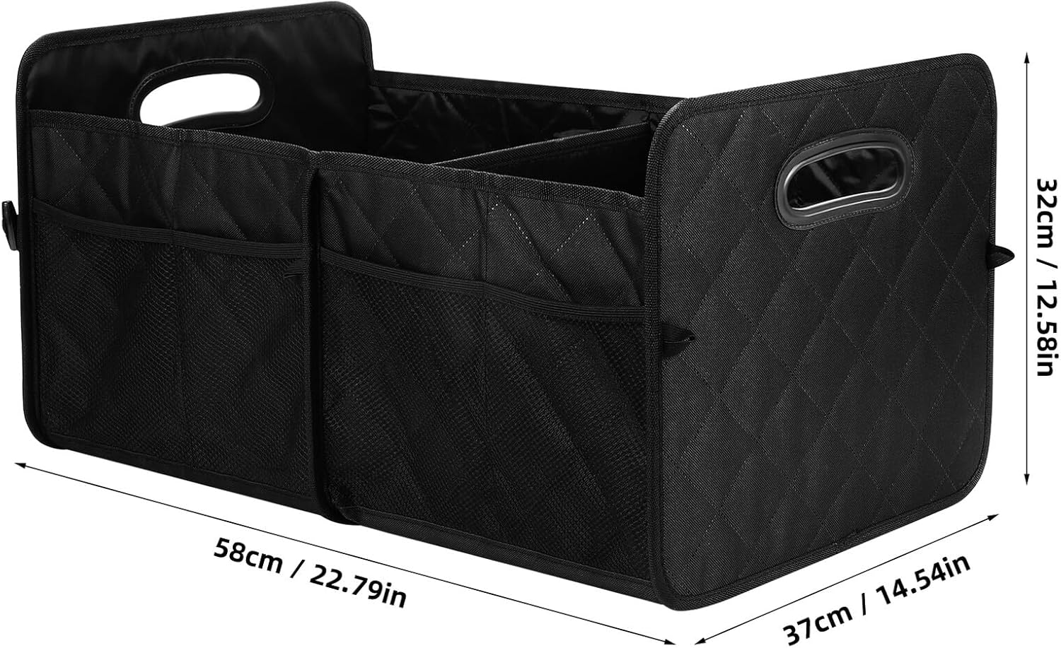 Package List 1 x trunk organizer Features -Size:58.00X37.00X32.00cm/22.79X14.54X12.58in -Material:Oxford fabric - Separated compartments: The unique separated compartment design of the car organizer allows for easy classification and quick access to your items car cargo organizer. -Color:Black - Foldable design: The car trunk storage box can be easily folded and stored when not in use, saving space in your car trunk trunk storage organizer for suv. - Spacious storage: The car trunk organizer offers ample space to store various items, keeping your car trunk clutter-free suv organizers and storage. - Easy installation: The car trunk basket is easy to install and can be securely fixed in your car trunk without sliding or tilting Trunk Organizer For Car Suv. - Selected material: Made of sturdy Oxford cloth material, the trunk organizer is strong and protects your items from damage. -Product Info:Trunk storage boxGoods Descriptiontrunk organizers and storage suv This trunk organizer is built to last and protect your items from any damage.car interior accessories Introducing our Car Trunk Organizer! Our car organizer is designed to provide ample space to store all your belongings in an organized manner.car trunk storage With its divided design, you can easily categorize and store different items