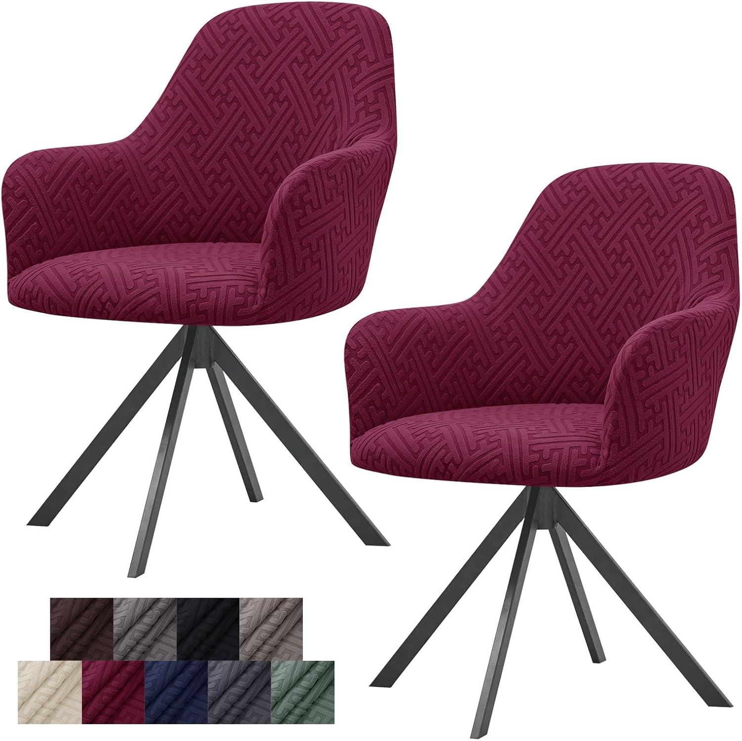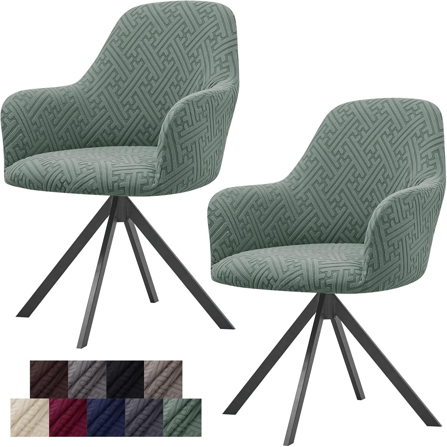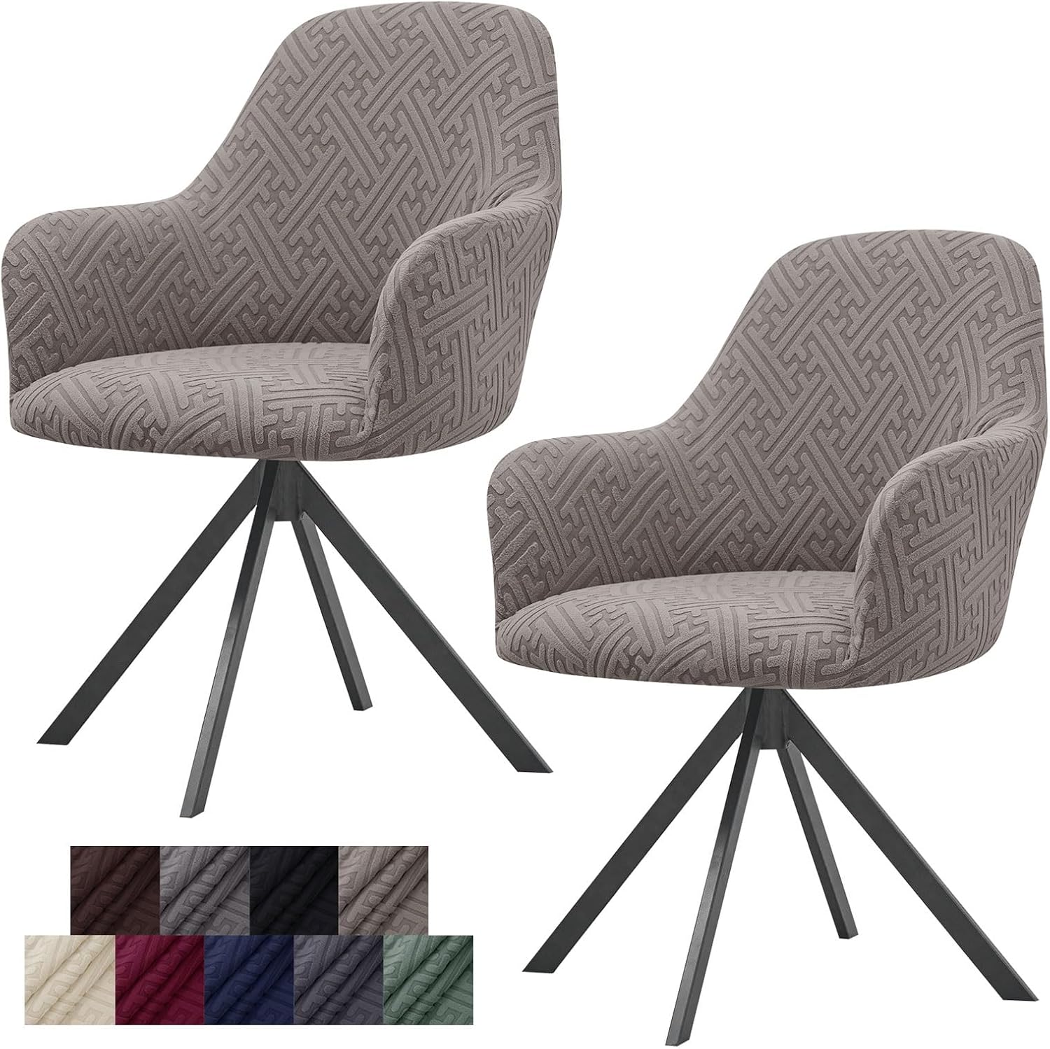 Product Details:We offer a wide range of stylish colors. These colors will work well with a variety of furniture in your dining room or kitchen. It also protects the chair from stains, scuffs, tears, pet scratches and child damage. Give your old chair a new look and long-term protection.Suitable Size:This chair cover fits most curved back chairs, accent chairs, dining chairs with arms, Vanity chairs, Computer chairs, Bar Stools, Counter Chairs, etc.Our curved back chairs fit:Overall height: 18.9-20.5 inches ( 48-52cm );Back height: 15.7-17.3 inches ( 40-44cm );Seat width: 20-21.7 inches ( 51-55cm );Seat depth: 17-18.5 inches ( 43-47cm );Armrest height: 6.7-8.3 inches ( 17-21cm ).Please measure your armchairs before choosing our chair covers.Besides, elastic band at the bottom makes the chair slipcovers anti-slip and stay in place.Easy To Install:1. Stand behind the chair , cover the chair from back to front,adjust the cover to fit the chair backrest smoothly first.2. Drape the cover to the bottom and cover the two armrests,Align the armrest with the seam of the cover.3. Tuck excess part of the cover into the gap of the seat to make the fabric more tight and keep the cover stay in place firmly.4.Smooth the wrinkles of the cover.Care Instructions:Machine washable, hand washable. Hang to dry is better. Cold water washing below 30 degrees Celsius or 85 degrees Fahrenheit. Low heat temperature iron if you need. Do not bleach.Package Contents:1/2/4/6 x Set of Chair Cover (Chair Not Included)Kind Tips:1. Due to the difference in light and display,the color may be slightly different from the picture and the product.2. Please allow slight measurement errors due to manual measurement.3. If you have any questions,please contact us via email and we will be happy to assist you.