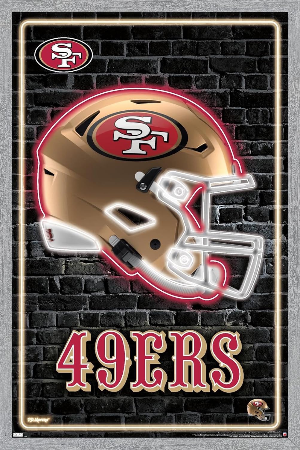 Trends International framed posters are everyone's favorite room decor! The clean, modern design and premium satin finish of this NFL San Francisco 49ers - Neon Helmet 23 Wall Poster will make a bold wall decor statement in any room. Decorate the bedroom, bathroom, kid's room, living room, office, dorm, and more! Our framed posters are lightweight and easy to hang using the sawtooth hanger so you'll be able to enjoy it in no time. Every one of our framed posters are proudly Made in the USA. Add these decorations alongside the other accessories on your party supplies list too! Trends International's wall posters are the perfect way to dress up your parties. A framed poster makes a great gift as well! Whether it's for a birthday, Christmas, house warming or for your best friend, they'll love receiving a framed poster to show off their style.