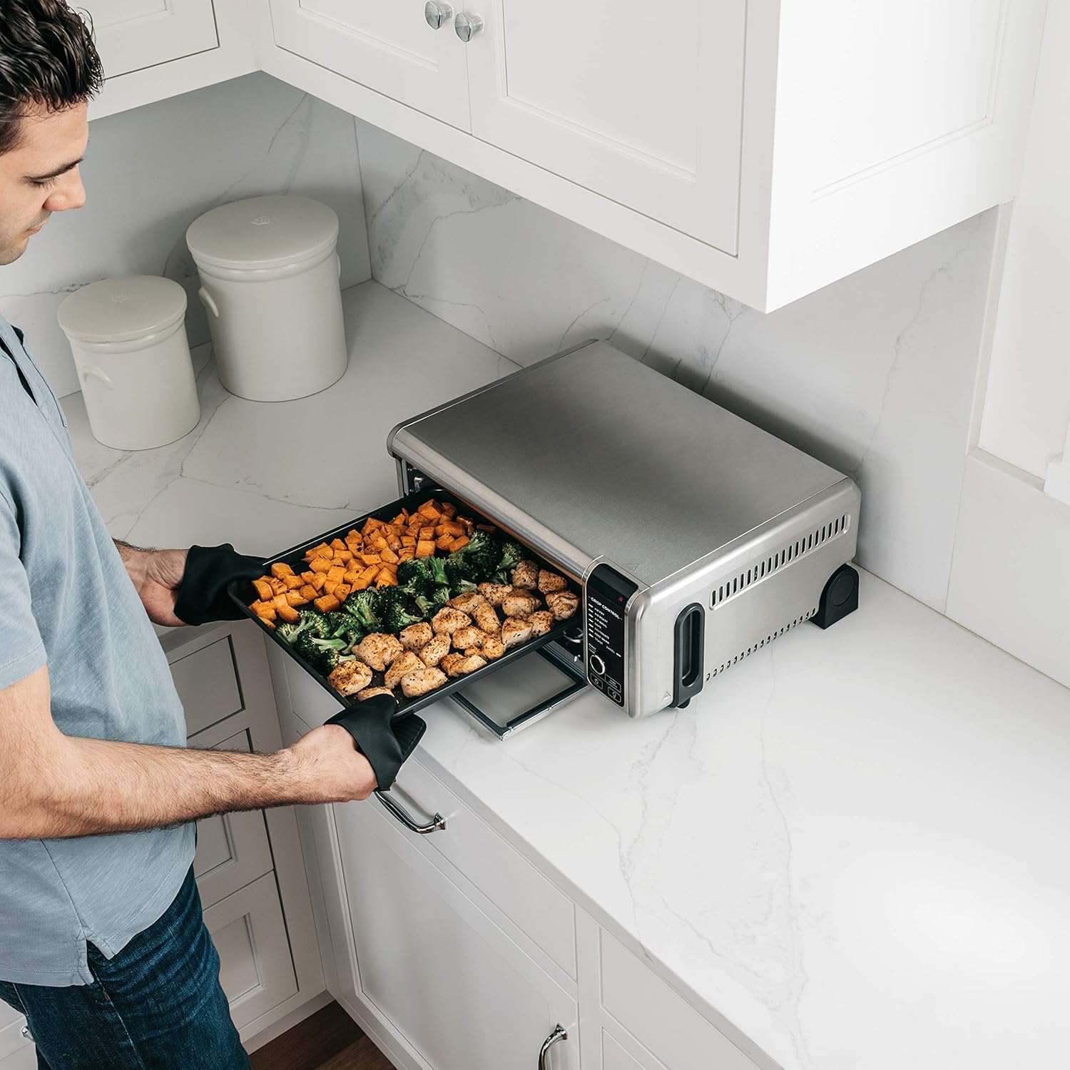 | Included Components | Air fry basket, 13" x 13", Chef-inspired 15+ recipe cookbook, Chrome-plated wire rack, Crumb Tray, One-year limited warranty, Sheet pan, 13" x 13" |
