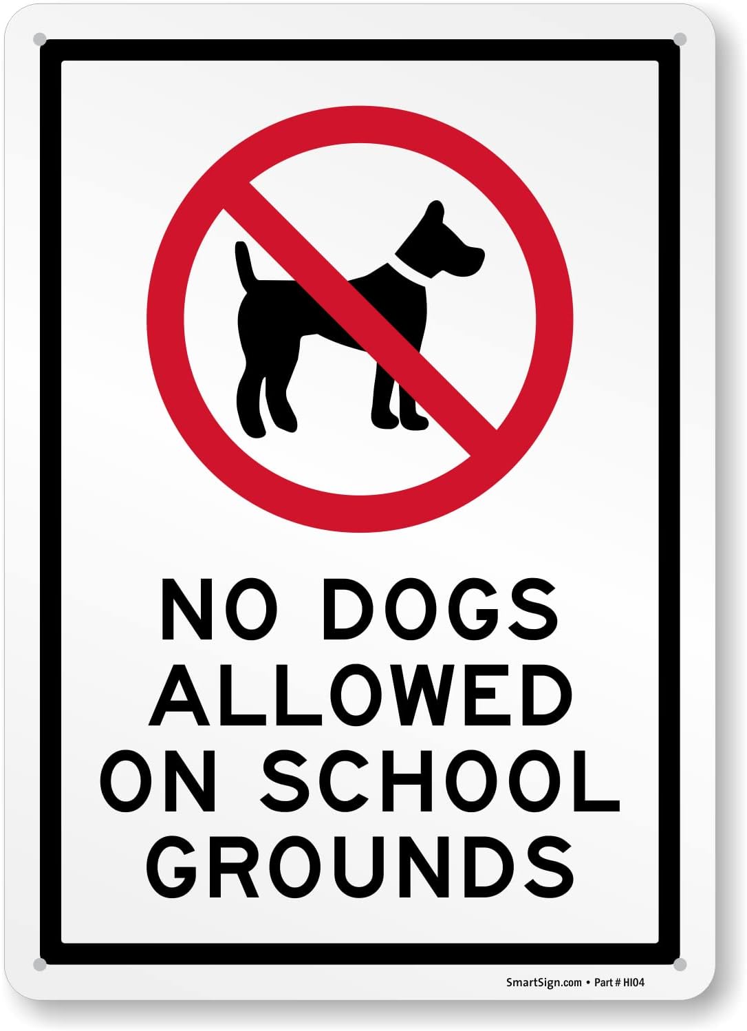 SmartSign No Dogs Allowed On School Grounds Signs - 2 Pack, 18 x 12 inch, 2mm Aluminum Composite, Pre-Drilled Holes, Black/Red on White