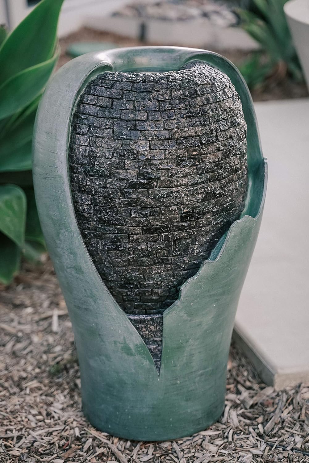 • BROKEN EGG SHELL WATERFALL FOUNTAIN WITH LED LIGHTS: Decorate your garden, patio, porch, deck or any outdoor space with this broken look egg shell waterfall fountain with turquoise finish and LED lights and create an inviting and enjoyable ambiance